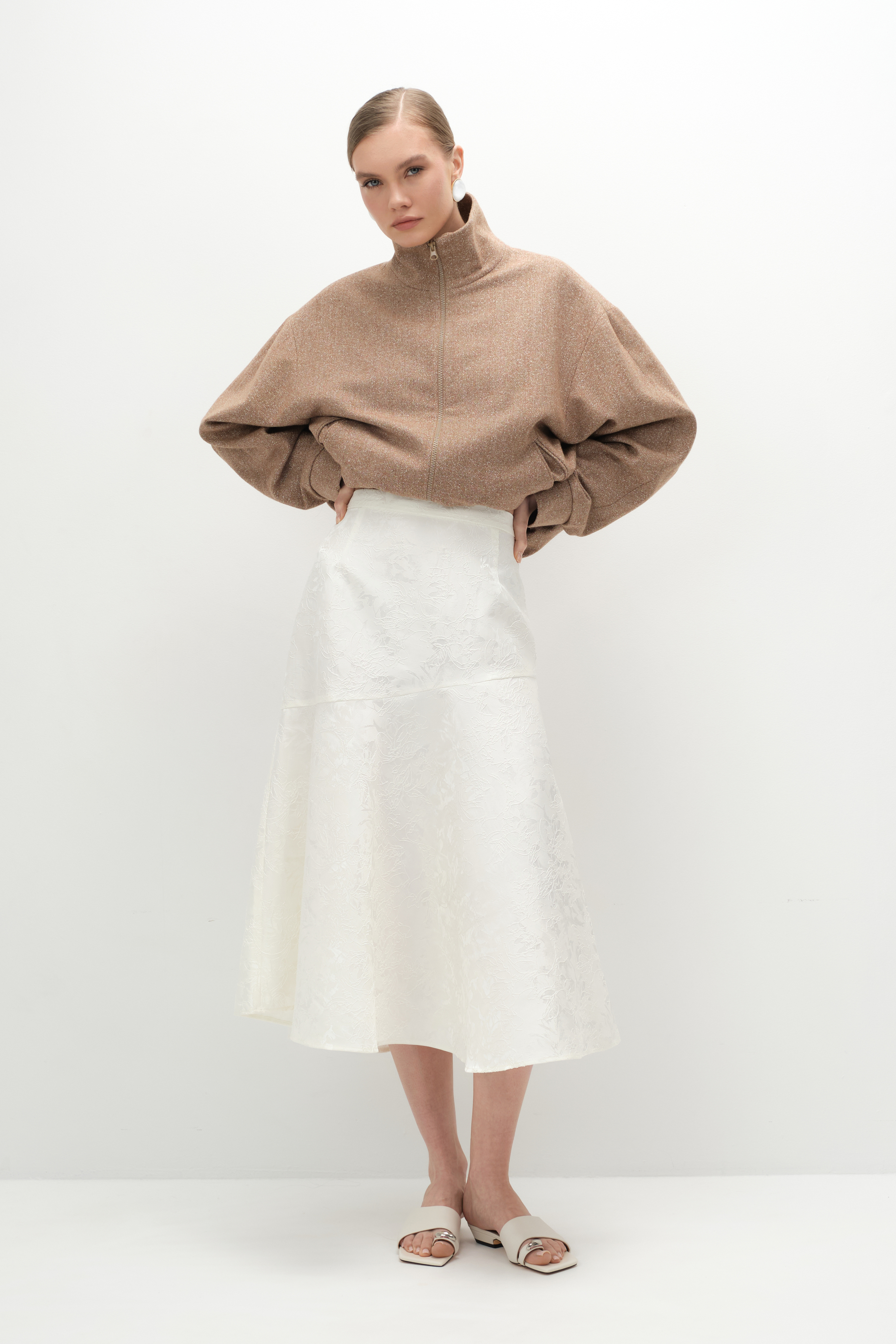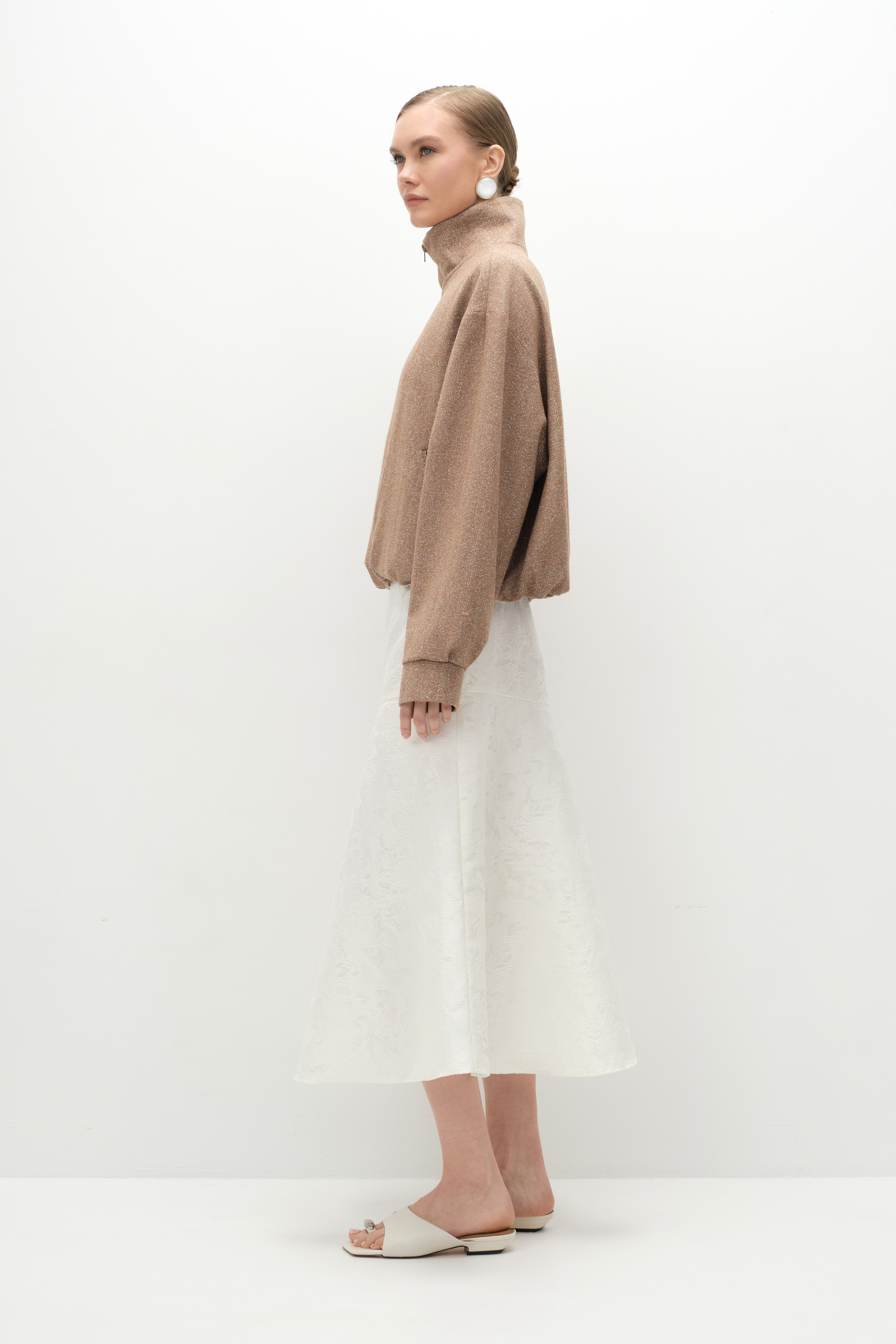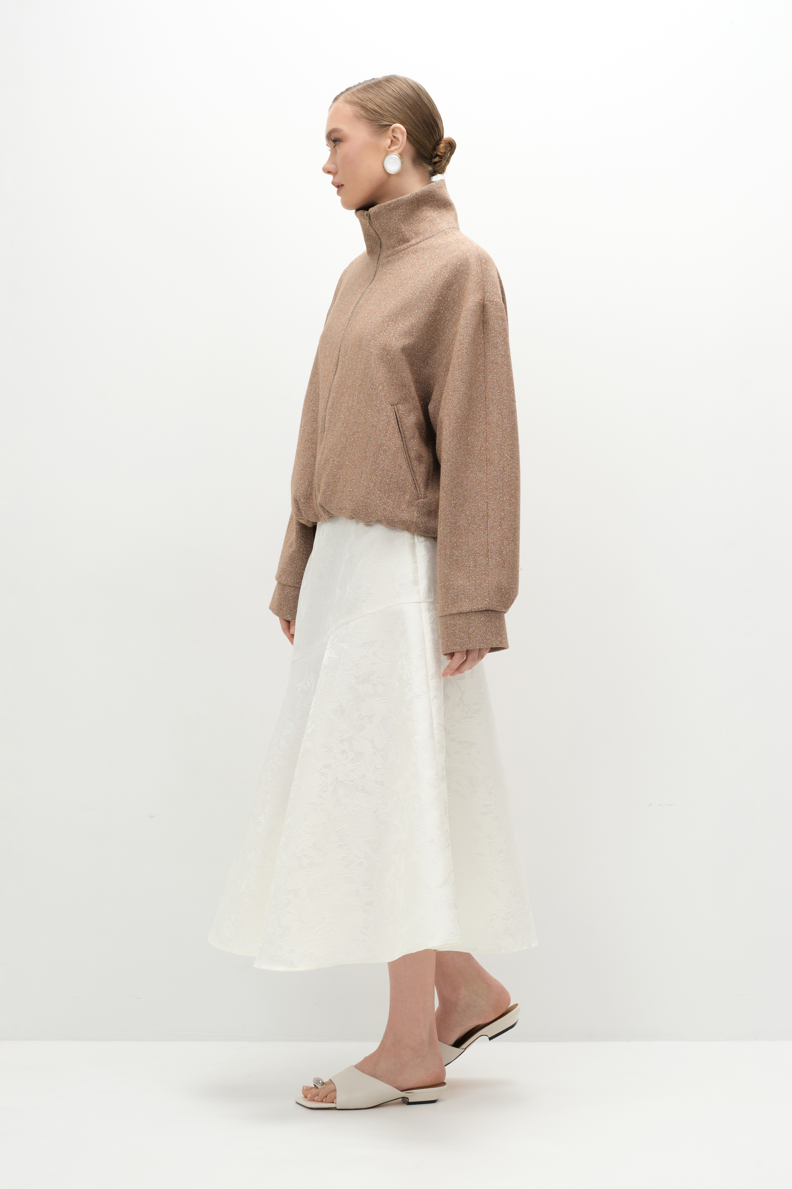 Куртка-бомбер выполнена из смесовой фактурной шерсти, на подкладе из поливискозы, застегивается на молнию в цвет изделия. Модель свободного кроя со спущенной линией плеч и широкими манжетами. Рекомендуемый температурный режим от +5 градусов и выше (зависит от личных ощущений).