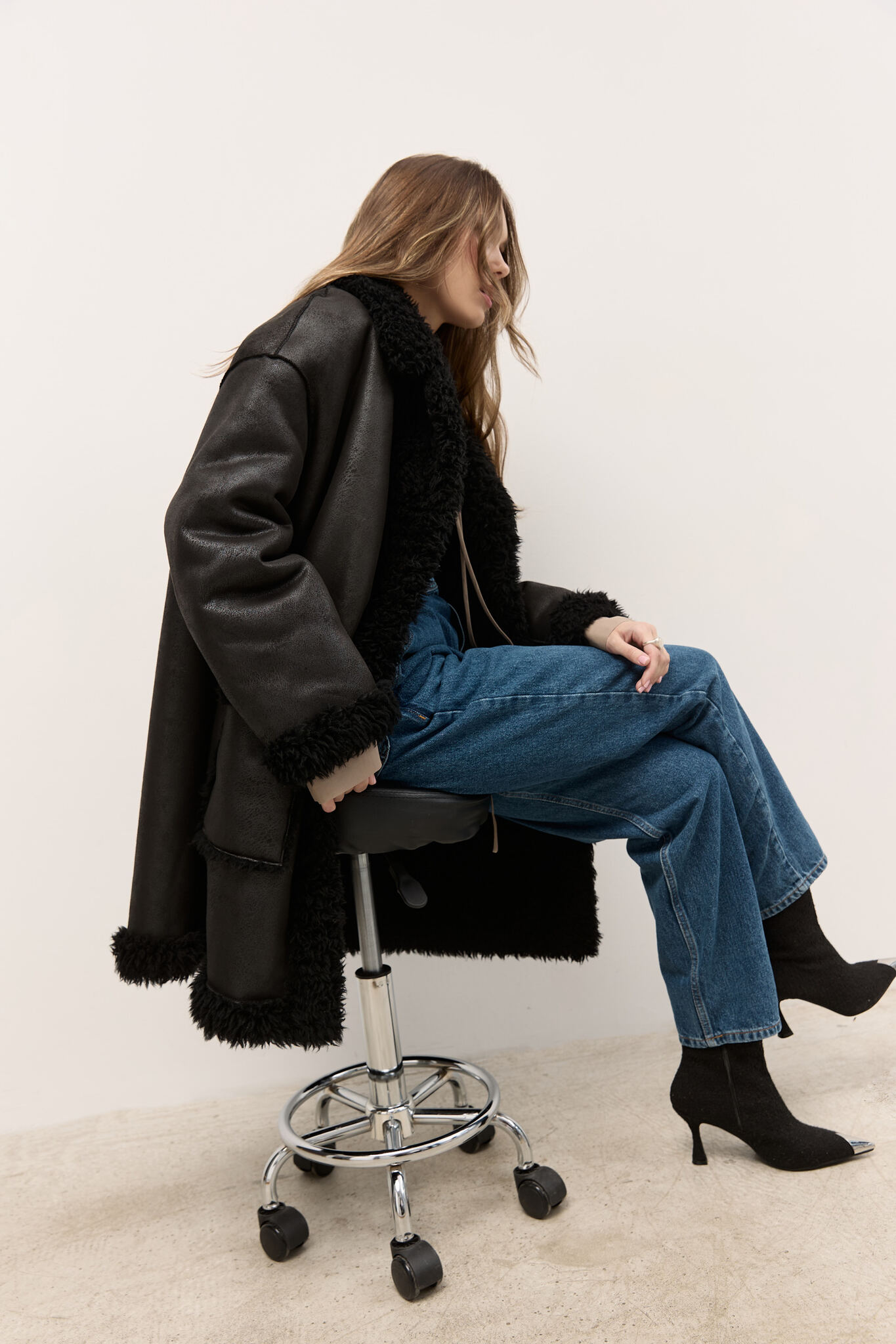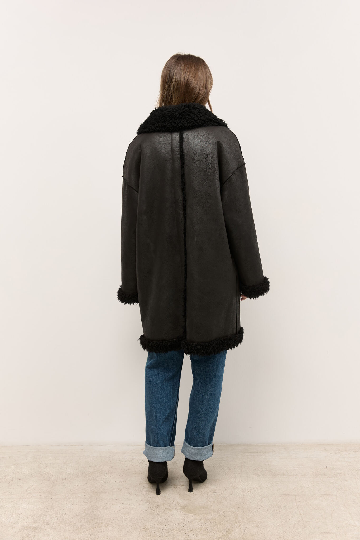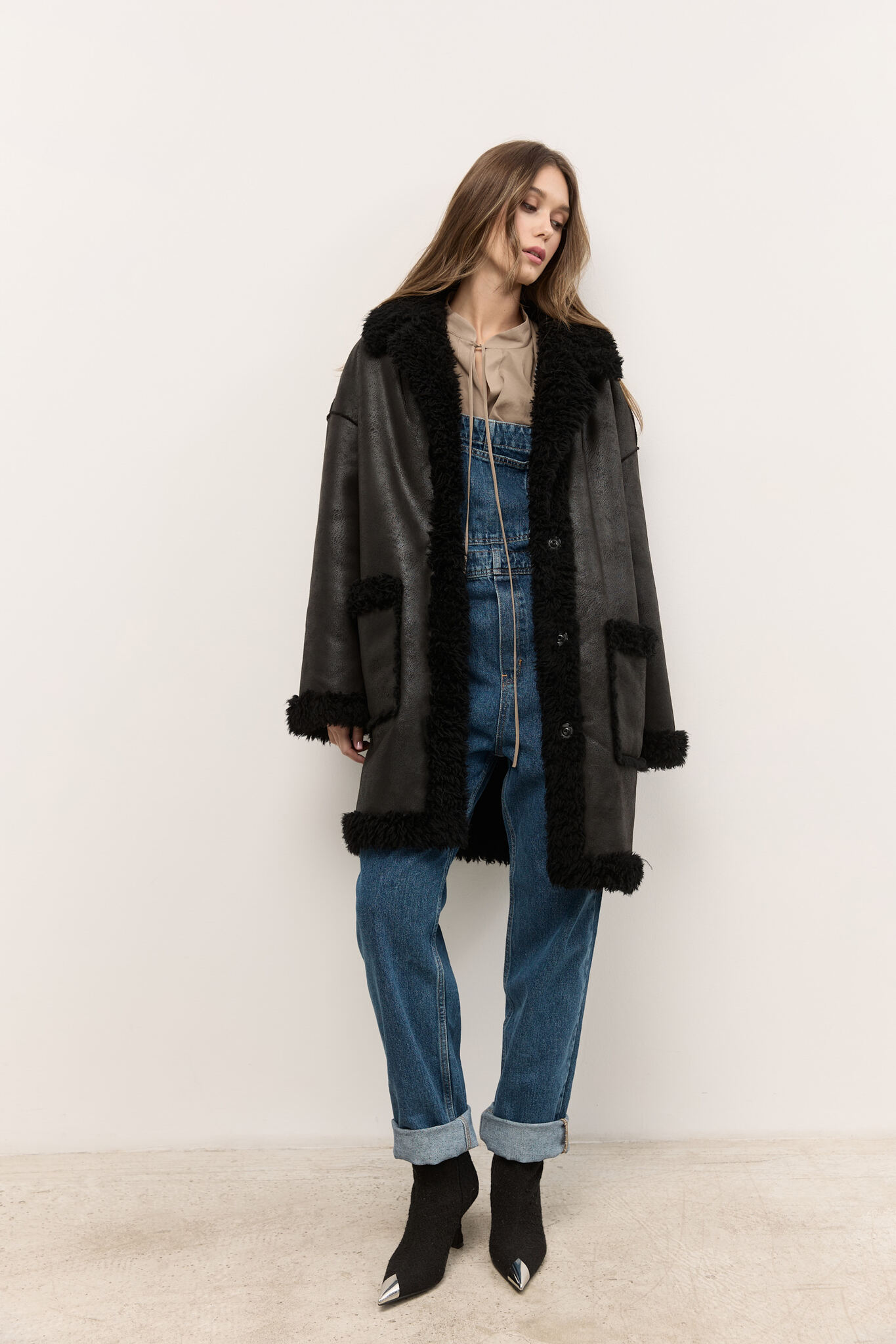 Двусторонняя дубленка средней длины из инновационного материала Merino WoolFur. Прочно скрепленные три слоя: ворс из 100% натуральной шерсти испанского мериноса, трикотажная основа и искусственная замша, позволяют изделию хорошо сохранять тепло, но оставаться легким. Модель с немного спущенной линией плеча и умеренным объемом. Возможны два варианта носки: мехом внутрь и мехом наружу, застегивается на потайные кнопки. Представлена в двух базовых цветах: мокко и черный. Температурный режим до -20 градусов.