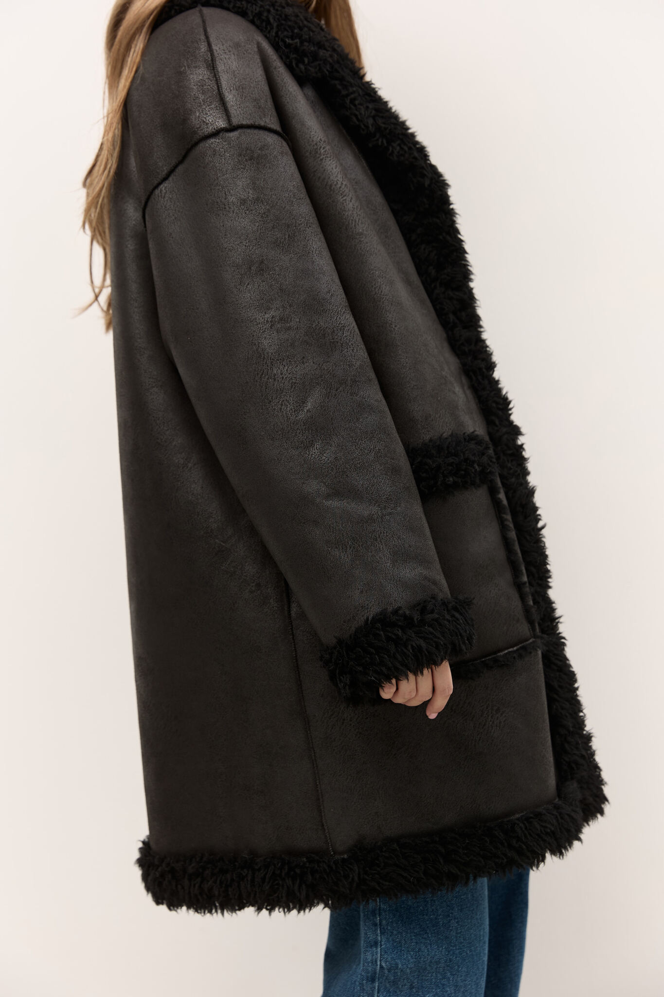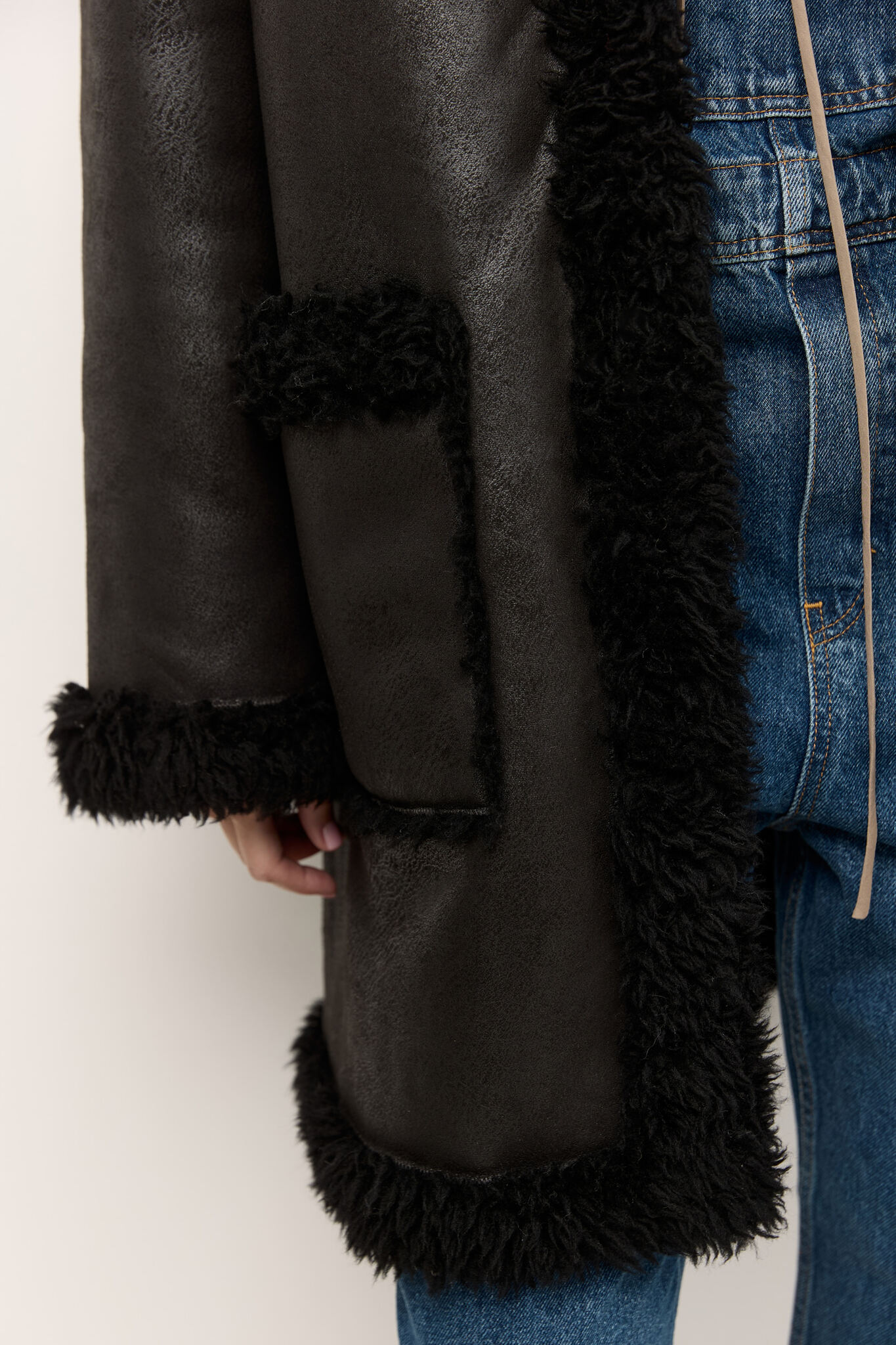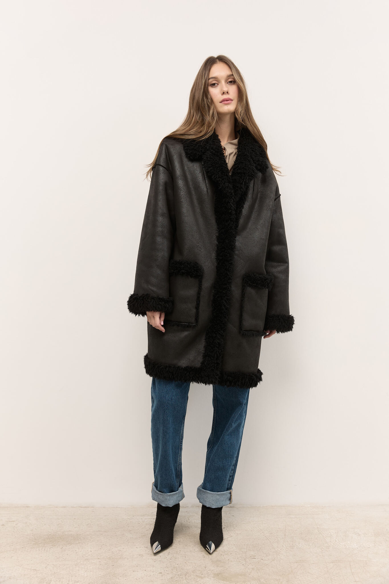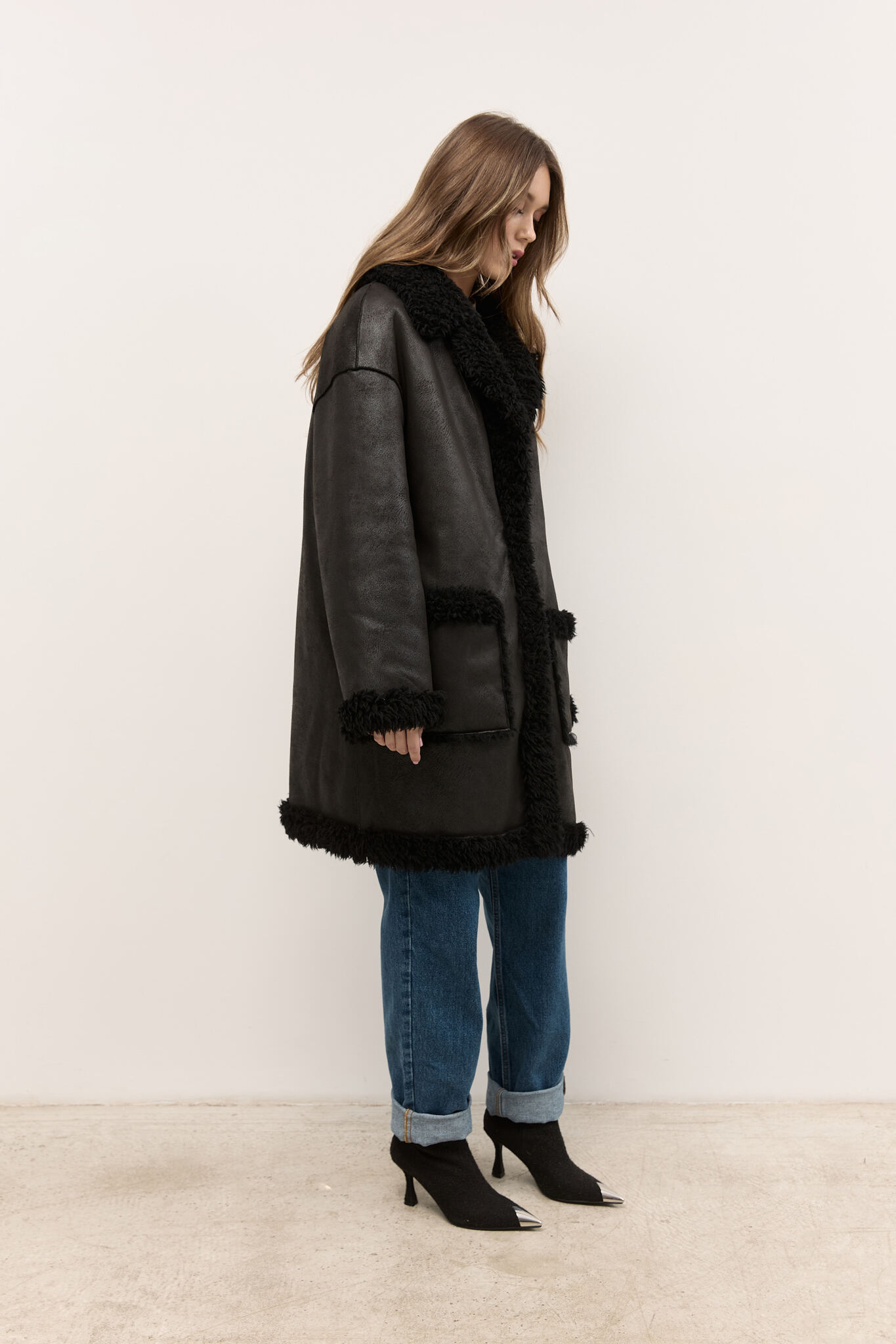 Двусторонняя дубленка средней длины из инновационного материала Merino WoolFur. Прочно скрепленные три слоя: ворс из 100% натуральной шерсти испанского мериноса, трикотажная основа и искусственная замша, позволяют изделию хорошо сохранять тепло, но оставаться легким. Модель с немного спущенной линией плеча и умеренным объемом. Возможны два варианта носки: мехом внутрь и мехом наружу, застегивается на потайные кнопки. Представлена в двух базовых цветах: мокко и черный. Температурный режим до -20 градусов.