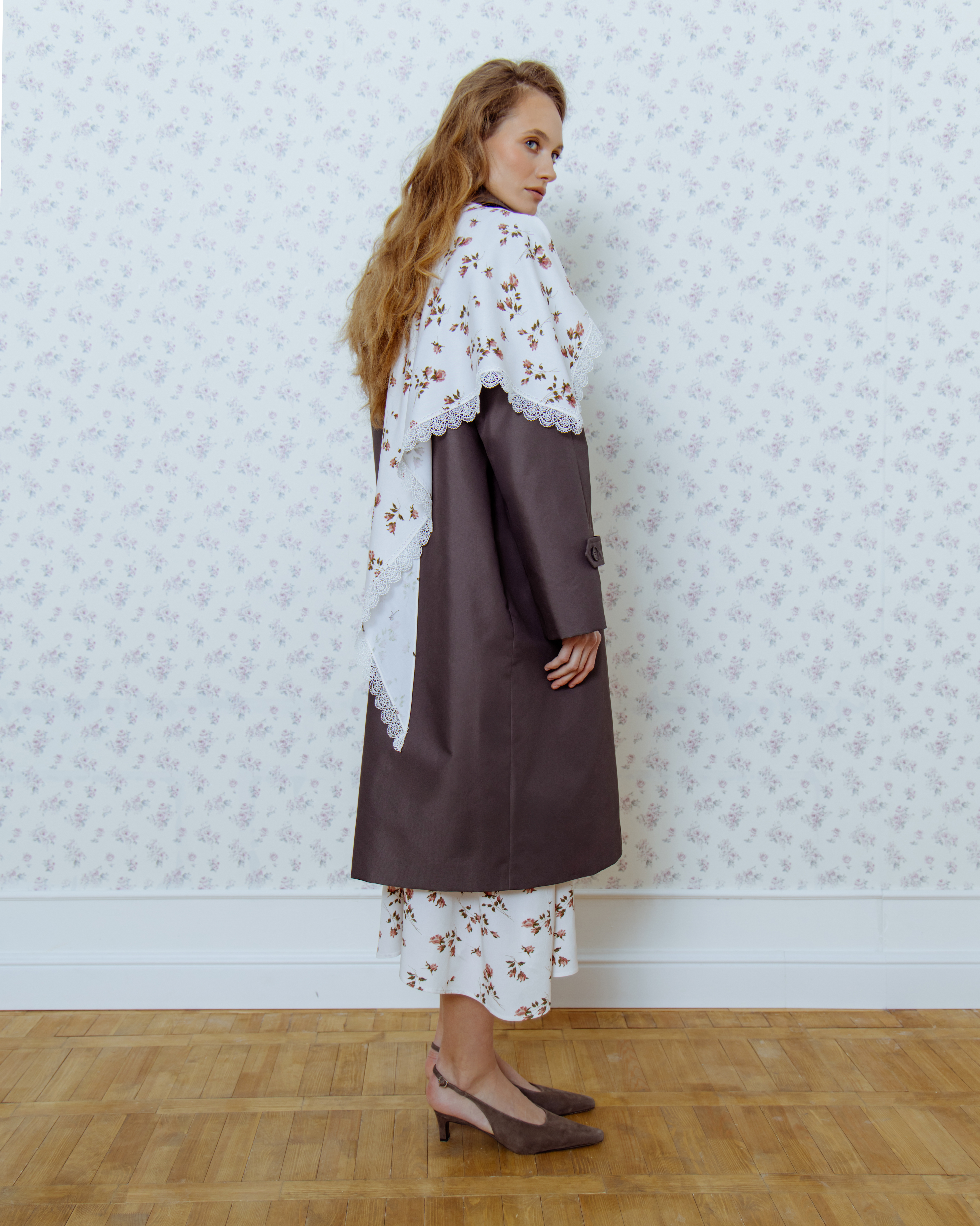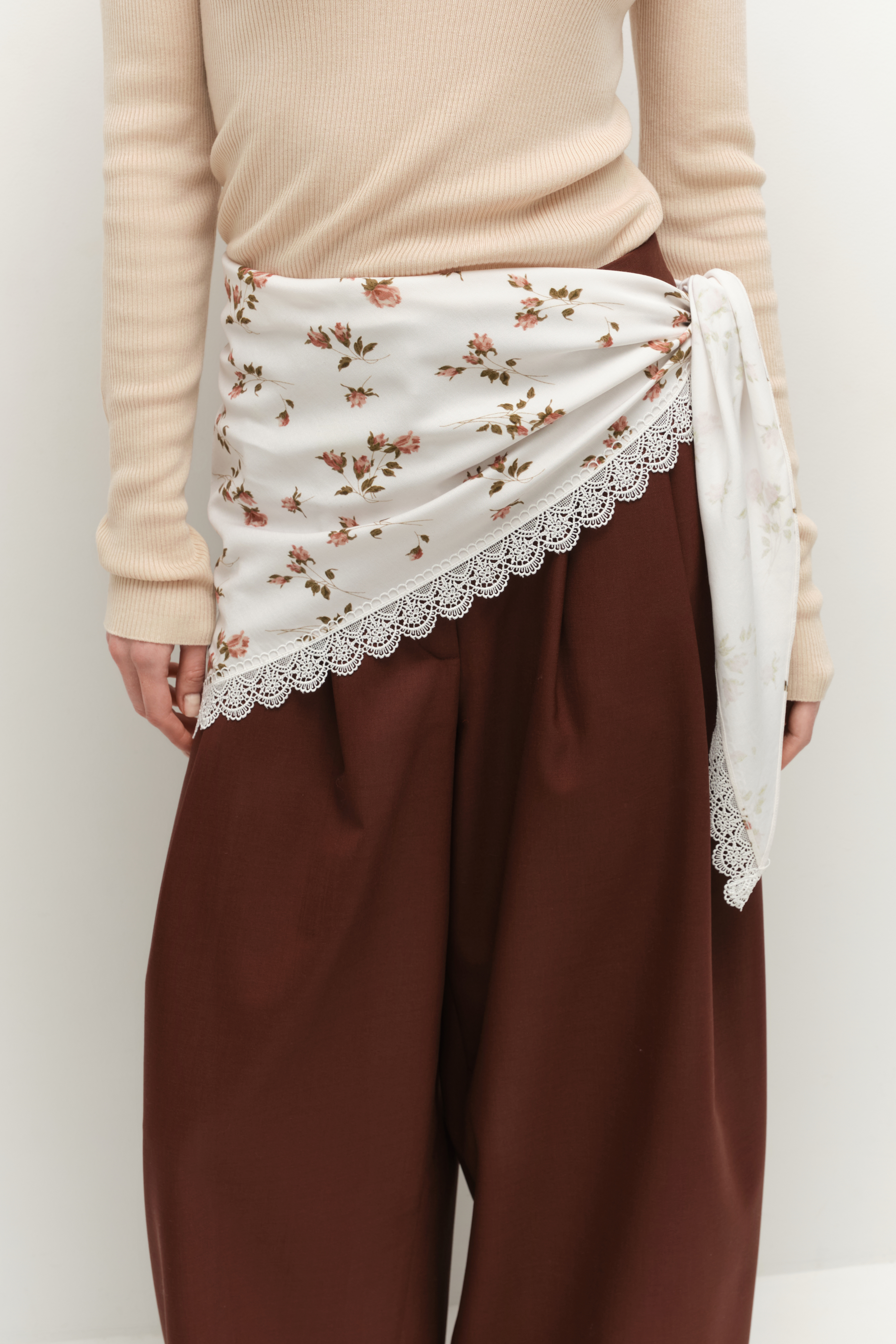 Косынка с кружевом цветочный принт