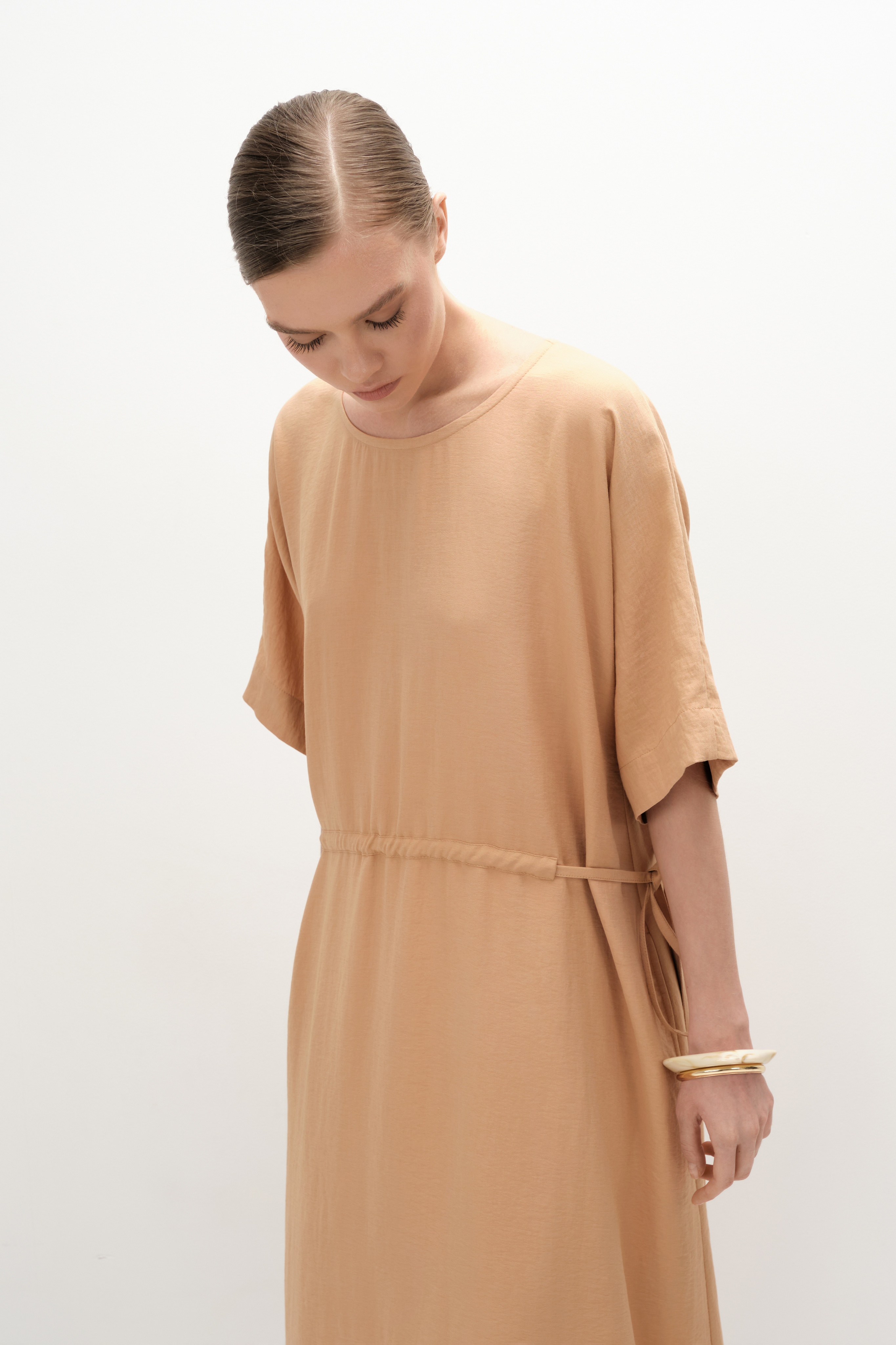Абсолютный бестселлер и любимое изделие клиенток Drugaya. Свободный расслабленный крой, средней плотности хлопок с полиэстром и кулиска на талии, которую можно регулировать на свой вкус — главные атрибуты комфортного, повседневного платья. Из секретных фишек — широкая подгибка на рукавах и по низу изделия, которая придает красивую форму и аккуратность силуэту. Идеальное сочетание стиля и удобства для тех, кто ценит качественные и универсальные вещи.