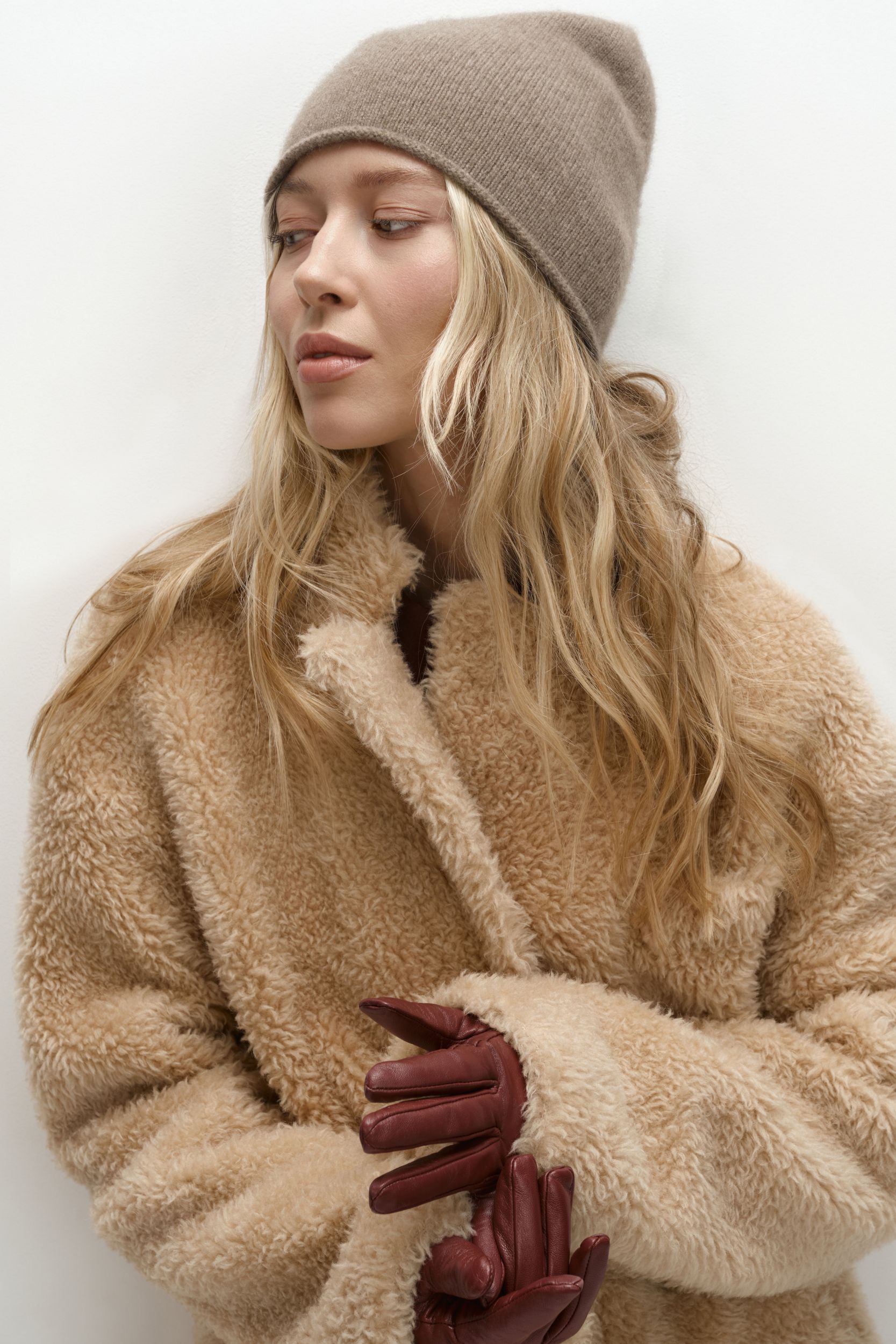 Базовая шапка из нежного кашемира без отворота – тонкая, но теплая модель для любительниц аккуратных головных уборах. Универсальна в сочетаниях с верхней одежды от пальто до пуховика. Модель комфортно облегает голову, хорошо сохраняет тепло.