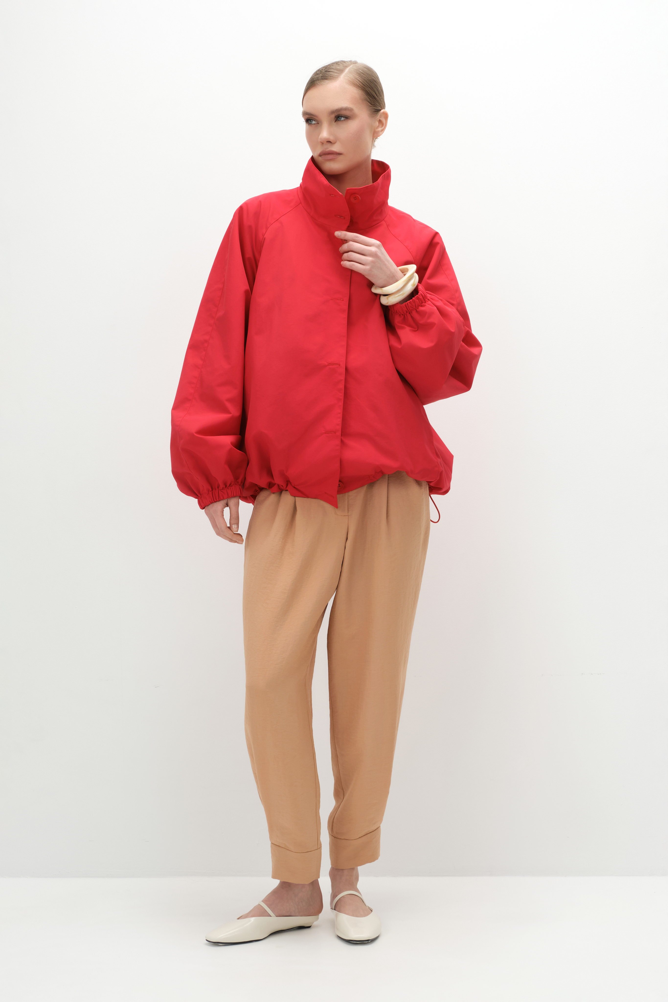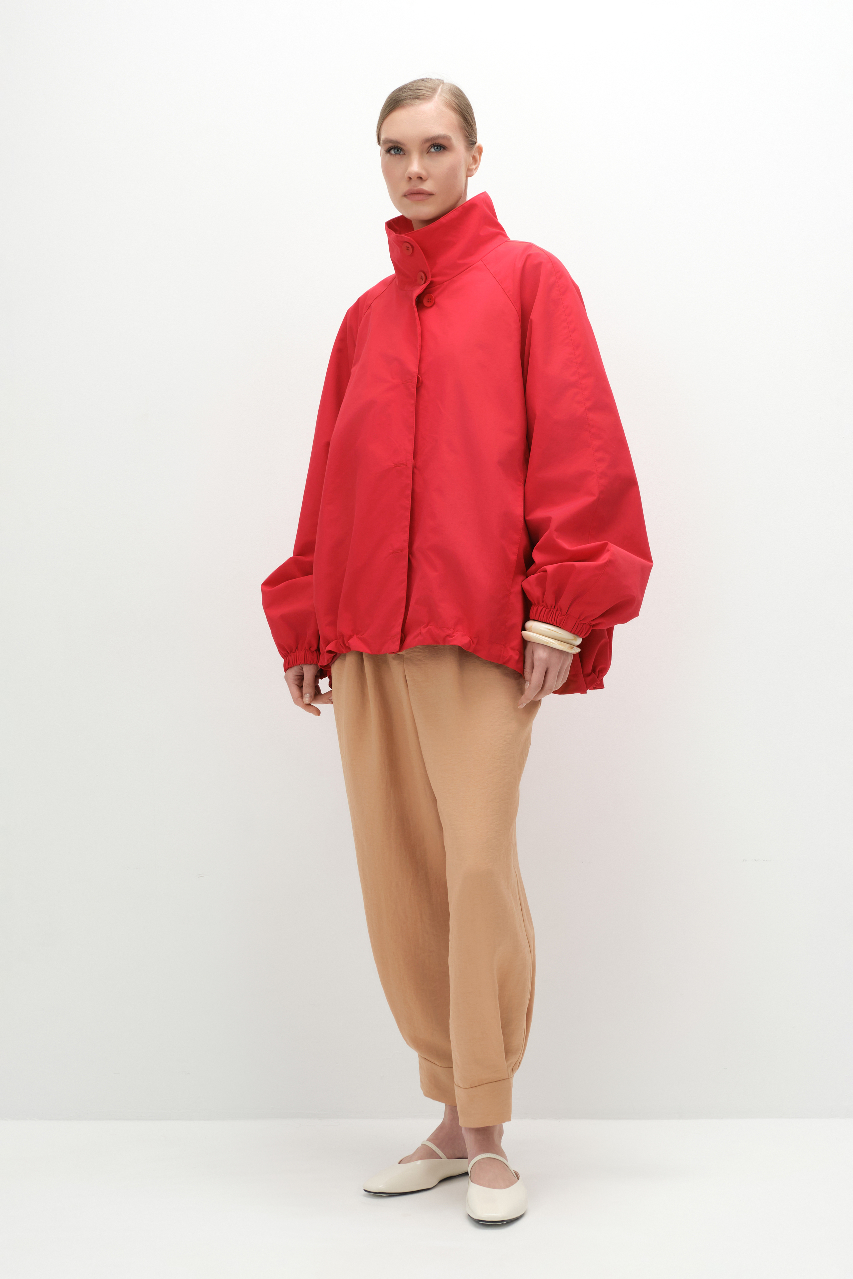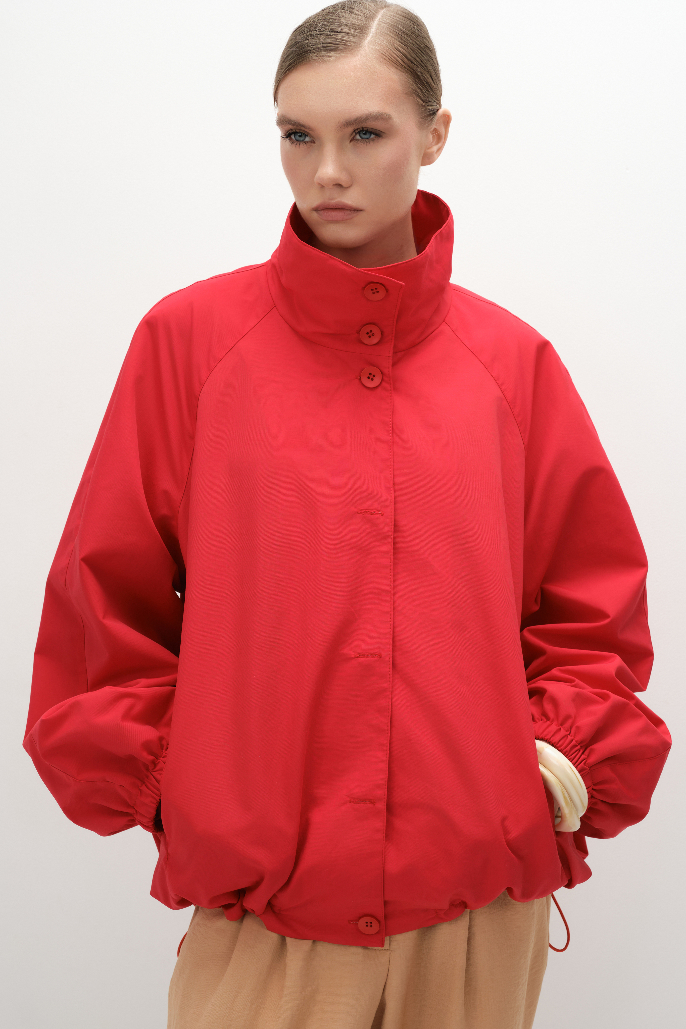 Яркая ветровка с воротником-стойкой из 100% нейлона. Свободный силуэт, застёжка на пуговицы в цвет изделия. Опущенная линия плеч, удлинённая спинка и кулиска по низу обеспечивают комфортную посадку и возможность регулировки. Подходит для повседневной носки и активных прогулок на свежем воздухе.