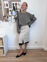 Юбка прямого кроя, модной длины "около колена" со шлицей по передней части изделия. Выполнена из комфортной полушерсти, на подкладке из поливискозы. Застегивается на пуговицу и молнию. В пару можно выбрать анорак из такой же ткани.