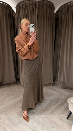 Юбка акцентной формы в длине миди из комфортной смесовой вискозы. Выполнена на поясе с потайной молнией и пуговицей по спинке изделия. Правильная форма и высота кокетки делает юбку комплиментарной любому типу фигуры. Мелкий аккуратный принт клеточка в коричневых оттенках разнообразит гардероб и при этом отлично сочетается со многими плечевыми изделиями как базовых так и ярких оттенков. В пару можно выбрать блейзер с поясом из такой же ткани.