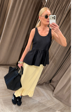 Приобретала эту юбку для повседневных образов. Юбка прекрасно справилась со своей задачей. Ткань у юбки очень нежная, маслянистая и приятная на ощупь. Мало мнется и помятость смотрится естественно и вписывается во многие образы. Волан по краю юбки придаёт образу женственность и пикантность. Цвет трендовый и нарядный. Обратила внимание на эту юбке Благодаря продавцу консультанту Анастасии, которая помогла и объяснила с чем можно носить и стилизовать эту юбку. Покупкой крайне довольна.