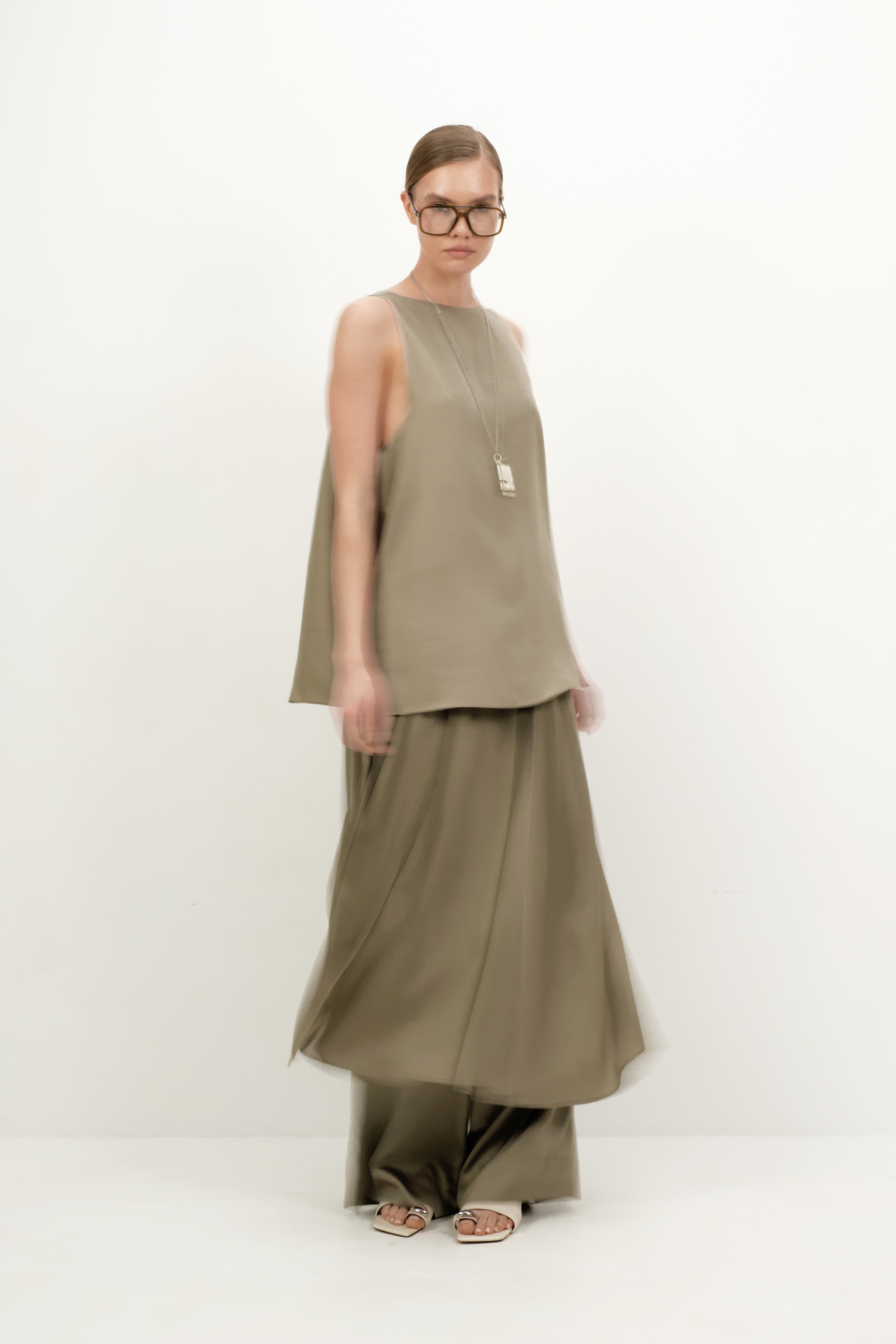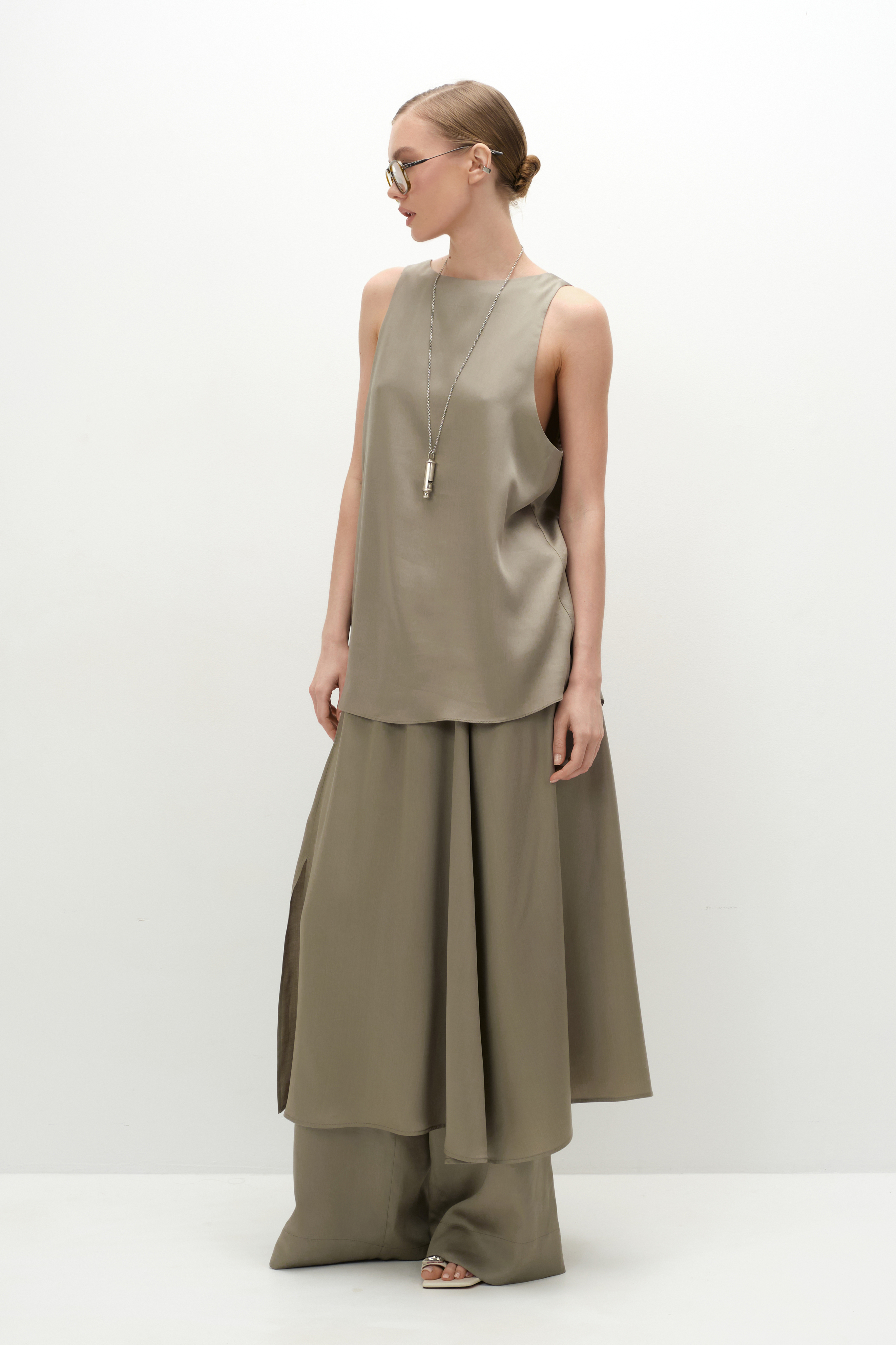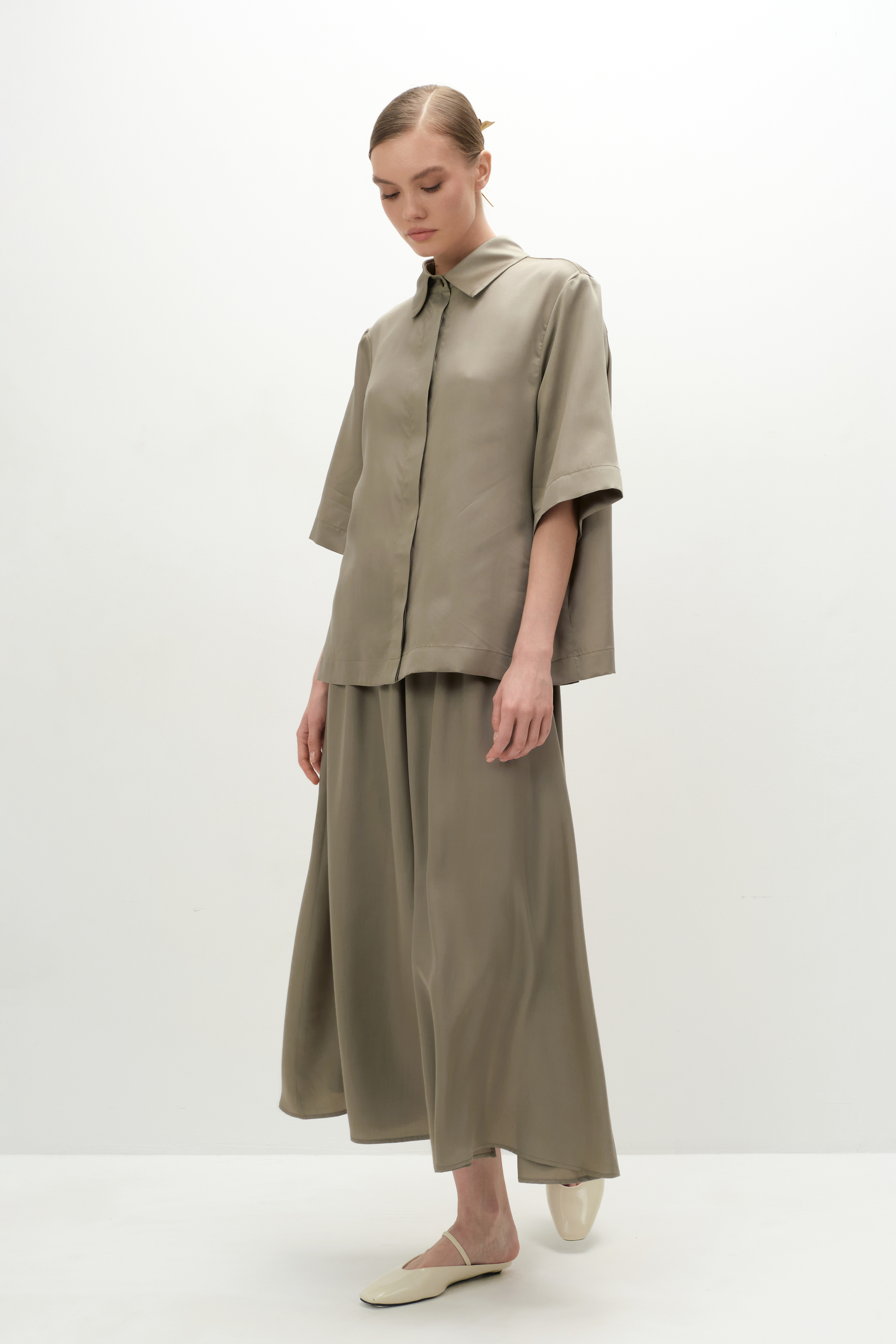 Наш бестселлер — юбка миди, скроенная по косой, с поясом на тонкой резинке. Благодаря такому крою мы получаем идеальную посадку на любом типе фигуры. Выполнена из струящейся тенсела. В пару можно выбрать топ и/или рубашку из такой же ткани и дополнить сет брюками и/или шортами. Такой костюм выручит в любой ситуации, а также удобен для путешествий, так как занимает очень мало места в чемодане.