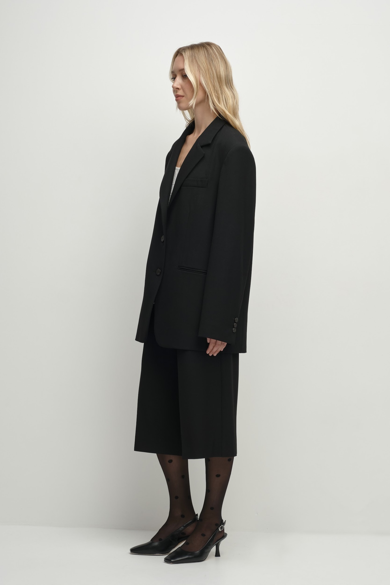 Лаконичный однобортный жакет прямого кроя с аккуратными лацканами и прорезными карманами без клапанов. Удлиненная модель умеренного объема с чуть расширенной плечевой линией отлично дополнит любой образ. Выполнен из района с добавлением полиэстера. В основе района - природной сырьё, его получают из натуральной целлюлозы. Ткань хорошо держит форму, но при этом пластична, практически не мнется и имеет хорошую воздухопроницаемость. В пару можно подобрать бермуды на поясе из такой же ткани.