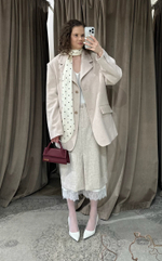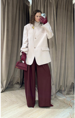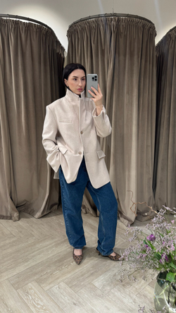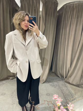 Пальто в форме жакета из мягкой смесовой шерсти. Умеренный объем, увеличенная линия плеча, классический английский воротник, длина до середины бедра — безупречная лаконичная формула для образов на межсезонье. Изделие выполнено на подкладе из поливискозы, застегивается на две пуговицы, также имеет внутреннюю пуговицу. Рекомендуемый температурный режим — от 0 градусов (зависит от личных ощущений).
