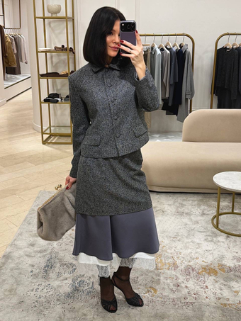 Жакет укороченный из смесовой шерсти с втачным рукавом. Ретро-вайб сбалансировали умеренным объемом и получили самую трендовую модель жакета на весну. Изделие выполнено на подкладе из поливискозы, застегивается на пуговицы в цвет изделия. В пару к нему можно выбрать укороченную мини-юбку из той же ткани.